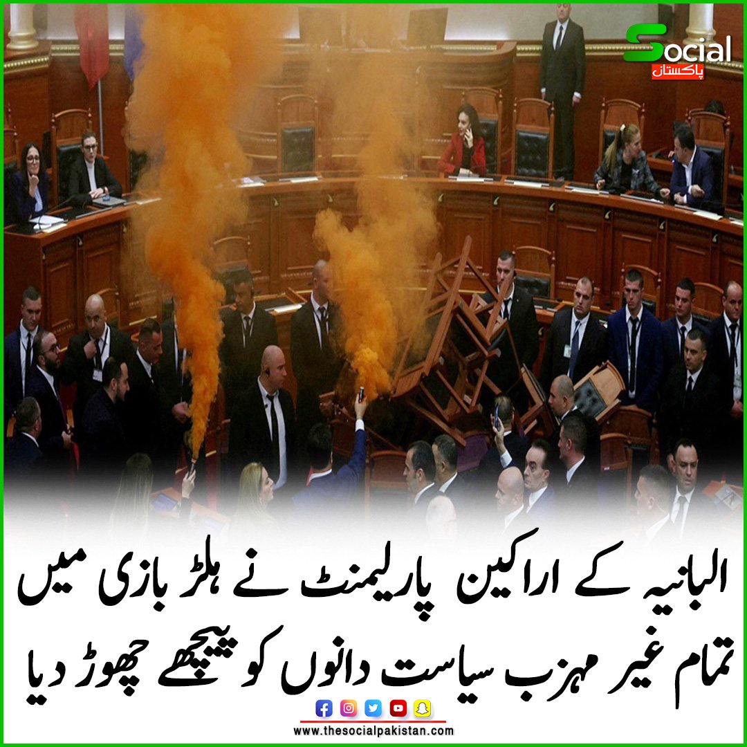 نجی ٹی وی ہم نیوز کےمطابق البانیہ کی پارلیمنٹ میں بجٹ اجلاس کے دوران اپوزیشن اراکین نے سموک بم چلا دیئے، اس دوران اپوزیشن اراکین نے وزیراعظمپر حملے کا منصوبہ بناکر ان کی جانب بڑھنے کی کوشش بھی کی تاہم ان کی اس کوشش کو سکیورٹی اہلکاروں نے ناکام بنا دیا۔اجلاس کے دوران بعض اراکین نے ایوان میں آگ لگانے کی کوشش بھی کی جسے بعد ازاں سٹاف نے بجھا دیا۔ایسا لگتا ہے کہ پارلیمنٹ اب شرفاء کے بیٹھنے کی جگہ نہیں رہی یہاں وہ ہی آیا ککرے گا جس کے پاس یا پیسے کی طاقت ہوگی یا پھر بدمعاشی کا ہنر –