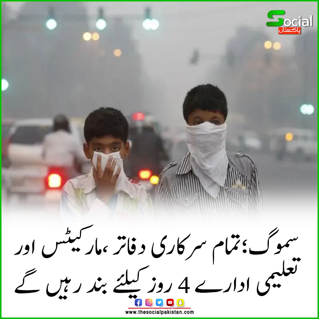نجی ٹی وی کی خبر کے مطابق جمعہ اور ہفتہ کو چھٹی کا فیصلہ صرف رواں ہفتے کیلئے کیا گیا ہے۔یوں رواں ہفتے تمام سرکاری و نجی ادارے اور تعلیمی ادارے 4 روز کیلئے بند رہیں گے، جمعرات کو 9 نومبر کی چھٹی کا وفاقی حکومت کی جانب سےپہلے ہی اعلان کر دیا گیا تھا البتہ وفاقی وزارت خزانہ کے ملازمین کیلئے 9 نومبر کی چھٹی منسوخ کر دی گئی تھی، باقی تمام سرکاری ملازمین 9 نومبر کو علامہ اقبال کے یوم ولادت کی خوشی میں تعطیل منائیں گے۔ ملک میں لوگوں کی صحت کے تحفظ کی غرض سے نگران صوبائی حکومت نے سموگ اور آلودگی کے تناظر میں جمعہ اور ہفتہ کو چھٹی کا اعلان کیا ہے۔نگران وزیر اعلیٰ محسن نقوی نے پریس کانفرنس کرتے ہوئے کہا کہ جمعہ 10 نومبر کو پورے پنجاب کے دفاتر اور سکولوں میں چھٹی ہو گی۔ ہوٹلز اور سینما جمعہ ، ہفتہ اور اتوار 3 دن کیلئے بند ہوں گے۔البتہ نئی ازدواجی زندگی شروع کرنے والوں کے اچھی خبر ہے کہ شادی ہال کھلے رہیں گے مگر عوامی پارک بند رہیں گے۔ بیکریاں اور فارمیسیز کھلی رہیں گی۔ ٹیک اوے ریسٹورنٹ کھلے رہیں گے۔ مارکیٹیں ہفتے کو بند ہوں گی۔
