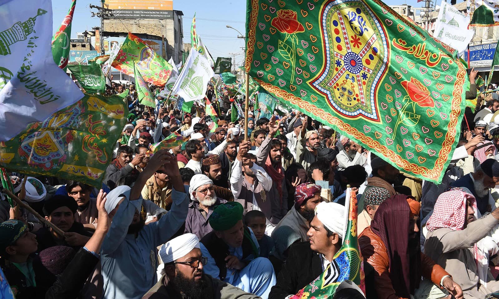 لاہور کے مختلف علاقوں کو دلہن کی طرح سجا دیا گیا ہےاور جگہ جگہ” قربان میں یا رسول اللہ “اور” غلام ہیں غلام ہیں رسول کے غلام ہیں”کی صدائیں ماحول کو پرنور بنا رہی ہیں