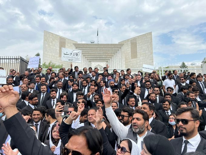 وکلا کو سلام ہے جو آئین کی بالادستی کے لئے سپریم کورٹ کے سامنے موجود ہے- #StandingWithConstitution pic.twitter.com/FzPbPJbmwF— PTI (@PTIofficial) April 3, 2023