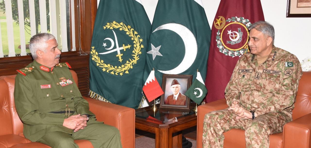 بحرین کے کمانڈر نیشنل گارڈ جنرل شیخ محمد بن عیسیٰ بن سلمان آل خلیفہ نے بدھ کو راولپنڈی میں جنرل قمر جاوید باجوہ سے ملاقات کی۔