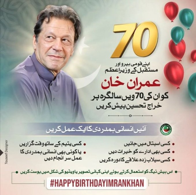 It's going to be very special evening today. We will be starting the birthday tribute to Chairman Imran Khan by posting our Act of Kindness videos & Birthday Wishes videos via the hashtag #HappyBirthdayImranKhan starting tonight at 9pm PST. #سالگرہ_مبارک_ہو_خان_صاحب pic.twitter.com/jFc9cHgpLz